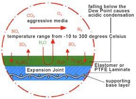 產(chǎn)品簡介:Viton?B應(yīng)用在低于硫露點(冷凝水)的溫度下會發(fā)生硫酸腐蝕的場合。Viton?B是杜邦公司生產(chǎn)的氟橡膠。用于NMEJ(非金屬膨脹節(jié))的橡膠材料通常用一個或多個織物層加強(qiáng)。織物增強(qiáng)件是玻璃織物,玻璃 - 凱夫勒混合織物或不銹鋼絲網(wǎng)和不銹鋼絲網(wǎng)。主要優(yōu)先解決的是介質(zhì)側(cè)橡膠涂層的質(zhì)量(無孔,最小厚度= 1.2 mm,光滑表面)。